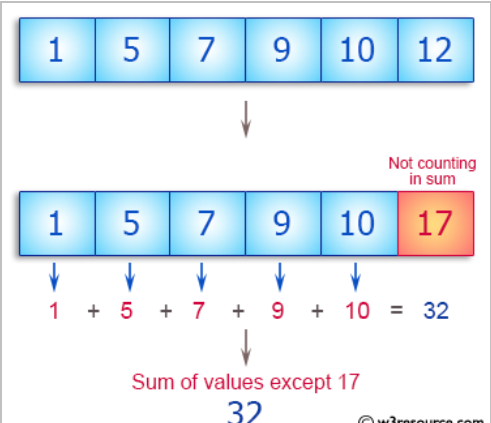 cout << "Sum of values in the array of integers except the number 17:" << endl;