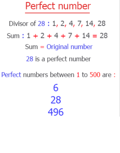 cout << "\n\n Find the perfect numbers between 1 and 500:\n";