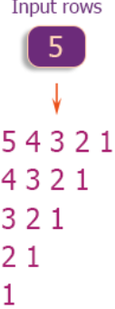 Write a program in C++ to display the pattern using digits with left justified and the highest columns appears in first row in descending order
