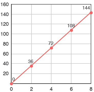 المسافة المقطوعة خلال كل ثانيتين هي: 36m
