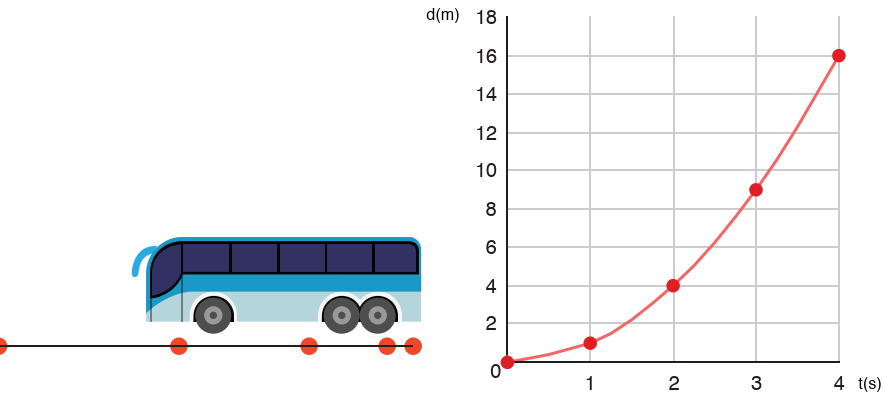 أستنتج أنه إذا قطع الجسم المتحرك مسافات غير متساوية خلال فواصل زمنية متساوية،تكون حركته متسارعة أو متباطئة، والخط البياني يكون خط منحني.