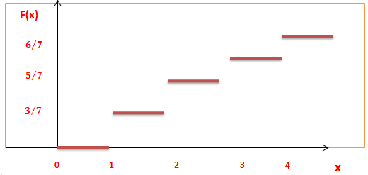 F(x)={( 0 X<1 3⁄7 1≤X<2 ( 5)⁄7 2≤X<3 6⁄7 3≤X<4 1 4≤X )