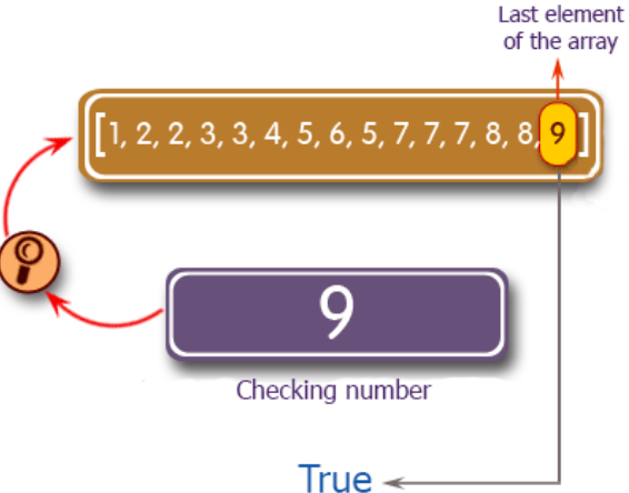 Console.WriteLine( (nums[0] == x) || (nums[nums.Length - 1] == x));