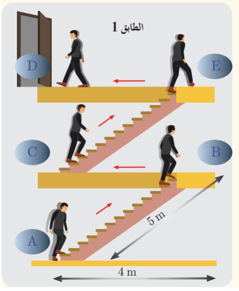 يصعد طالب من الصف الأول الثانوي إلى غرفة الصف وفق الشكل المبين: