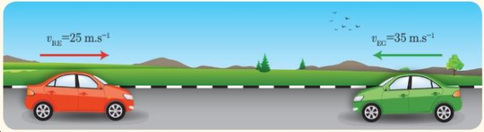 بملاحظة الشكل المجاور، ما هي سرعة السيارة الحمراء بالنسبة للسيارة الخضراء؟
