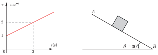 نعطي لجسم كتلته m=100g سرعة ابتدائية v0 موازية للمستوي AB الذي يميل عن الأفق بزاوية (ϴ=30º) فيخضع لقوة احتكاك نعدها ثابتة، إذا بدأ حركته من A الى B