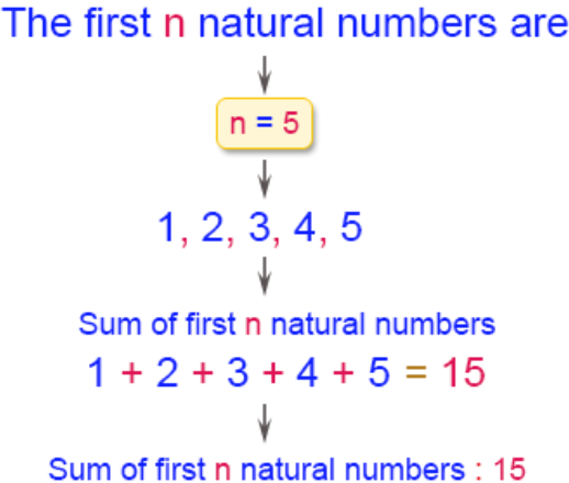 Console.Write("\nThe Sum of Natural Number upto {0} terms : {1} \n",n,sum);