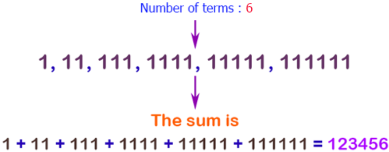 Console.Write("Calculate the sum of the series 1 +11 + 111 + 1111 + .. n terms:\n");