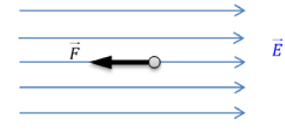 وضعت شحنة كهربائية (q=-2 μC)، في نقطة من منطقة يسودها حقل كهربائي منتظم فتأثرت بقوة شدتها F=0.08N