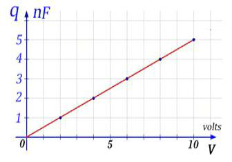 من المنحني البياني نلاحظ أّن الميل هو عبارة عن نسبة الشحنة إلى الكمون أي: