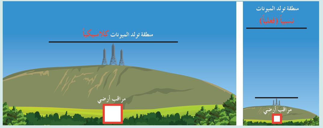 المراقب الذي يتحرك مع الميونات يعتبرها ساكنة بالنسبة له فيكون زمن رحلتها: