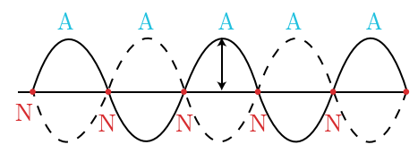 عدد أطوال الموجة= L/λ = L.f/v = 1*50/20 = 2.5