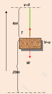 عند ارتخاء السلك تكمل الحمولة حركتها تحت تأثير تسارع الجاذبية نحسب السرعة الابتدائية لهذه المرحلة وتكون هي نفسها السرعة النهائية للمرحلة الأولى التي قطع فيها مسافة 20 متر.