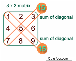 Console.Write("\n\nFind the sum of left diagonals of a matrix :\n");