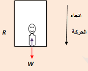 تحرك مصعد الى اسفل من السكون بتسارع ثابت وقطع مسافة S في زمن t حيث (s=1/6*g.t2) وضع صندوق كتلته m