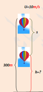 يهبط منطاد بسرعة (10m/s)، وعندما كان على ارتفاع 300 متر أثر عليه تسارع متناقص مقداره 0.4،