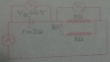 من الدائرة الكهربية الموضحة بالشكل اوجد قراءة كل من A , V1 , V2 فى الحالتين :