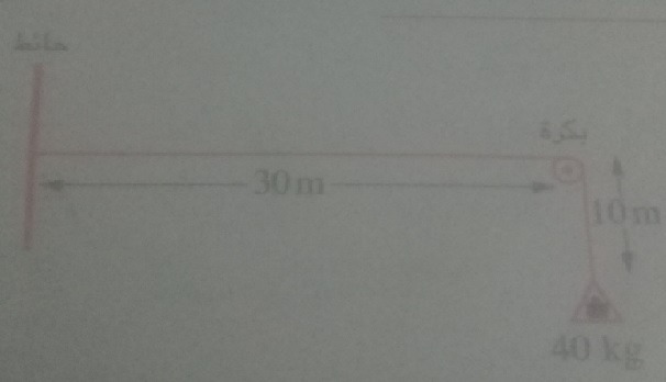 فى الشكل المقابل:اذا كانت كتلة الوتر 10 kg ويهتز بتردد 8 هيرتز، عجلة الجاذبية 10 m/s^2 احسب سرعة الموجة المنتشرة فى الوتر