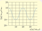 • إذا كانت سرعة الموجة (20m/s) احسب تواتر الموجة ودورها.