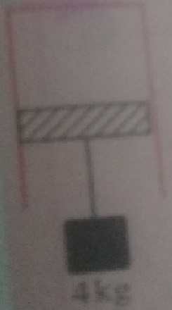 فى الشكل المقابل : اناء مزود بمكبس معلق به ثقل كتلته 4 كجم فاذا كان حجم الهواء المحبوس 400 cm^3 ومساحة قاعدة الاناء 20 cm^2 والضغط الجوى 1.013 * 10^5 N/m^2