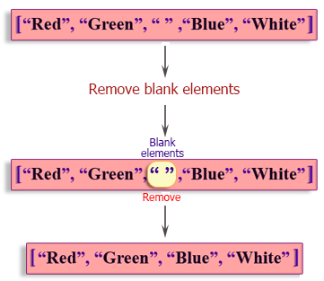 Original array: ["Red", "Green", "", "Blue", "White"] Remove blank element from the above array: ["Red", "Green", "Blue", "White"]