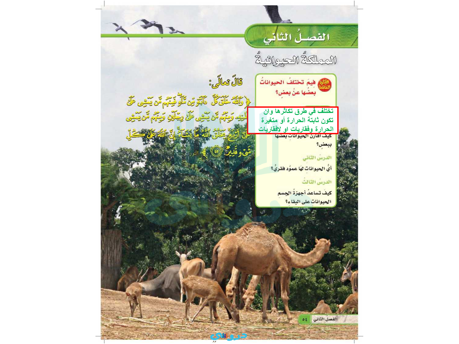 حل كتاب الطالب علوم رابع ابتدائي الفصل الثاني المملكة الحيوانية