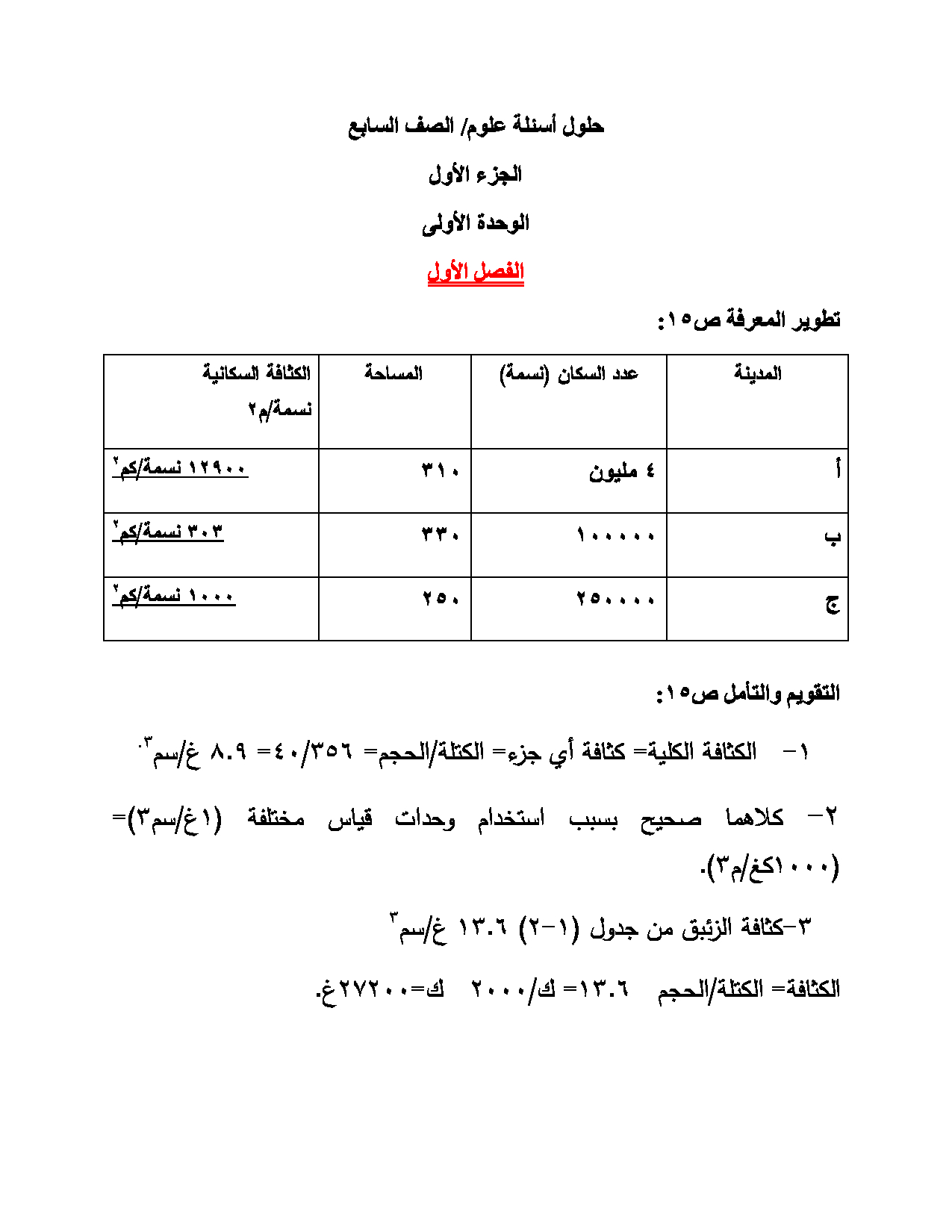 حل أسئلة الكتاب المدرسي- علوم - الصف السابع - الفصلين الأول والثاني