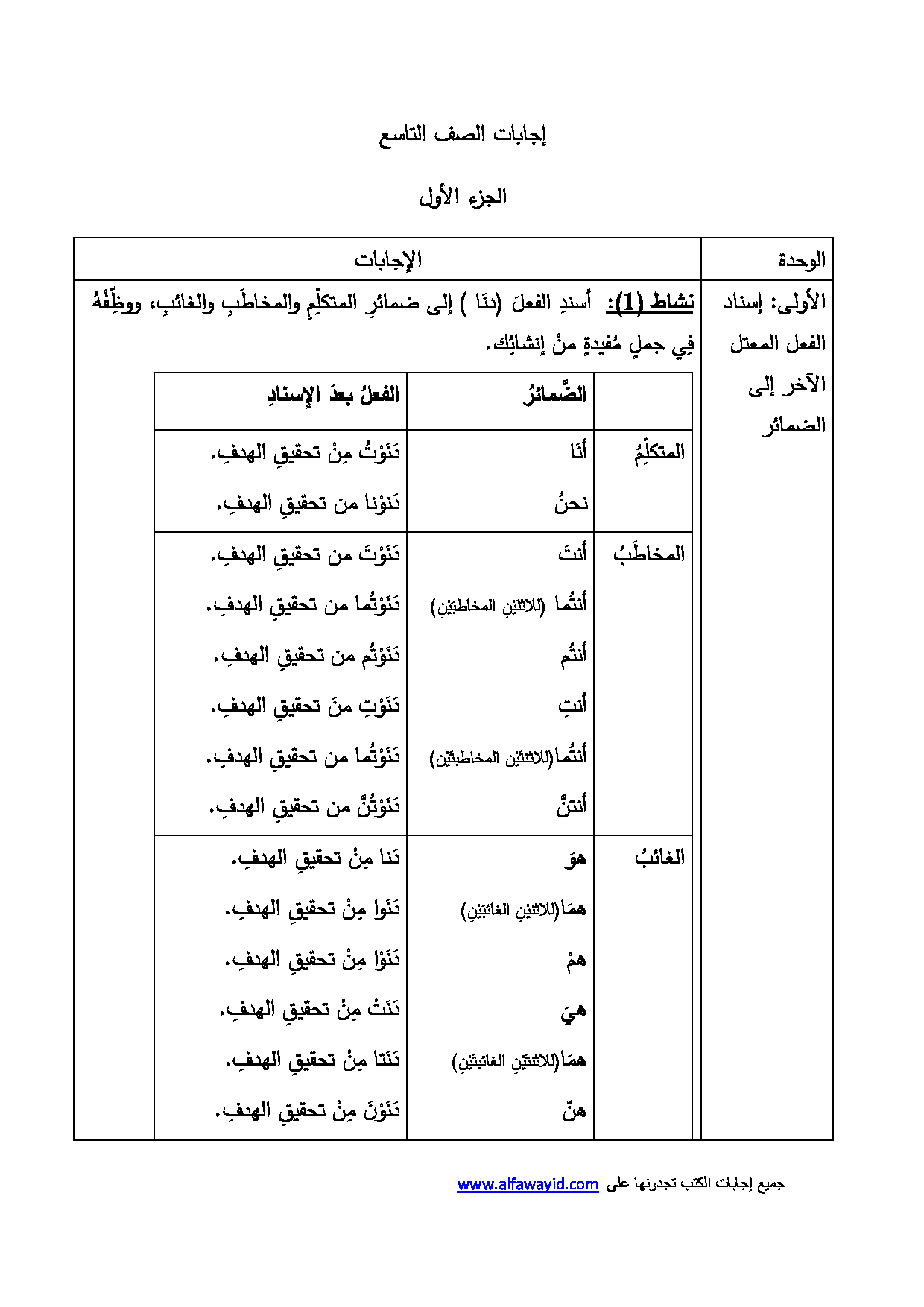 حل أسئلة الكتاب المدرسي لمادة اللغة العربية - الصف التاسع - الفصل الدراسي الاول والثاني ( لغة عربية )
