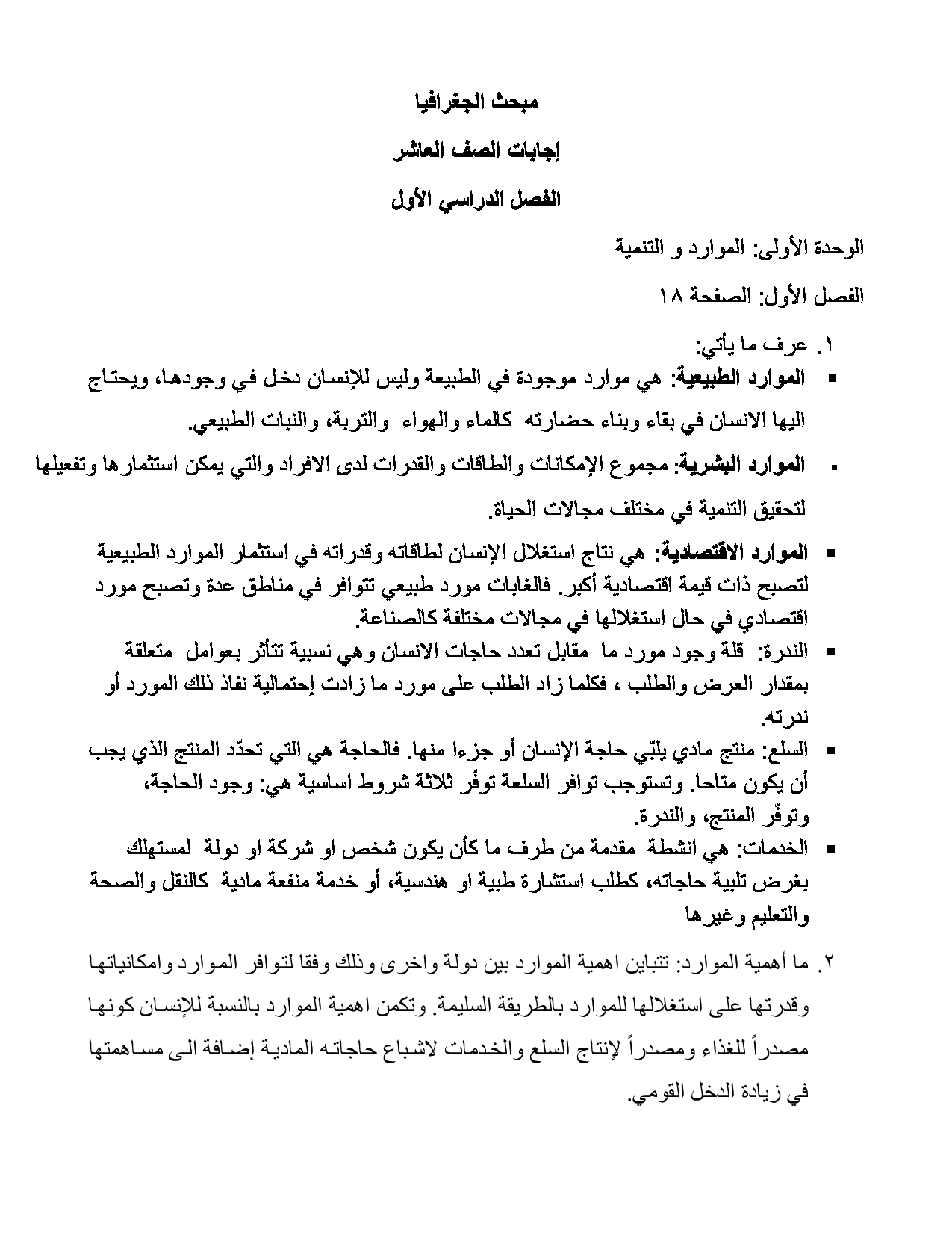 حل أسئلة الكتاب المدرسي لمادة الجغرافيا - الصف العاشر - الفصل الدراسي الاول والثاني ( جغرافيا )