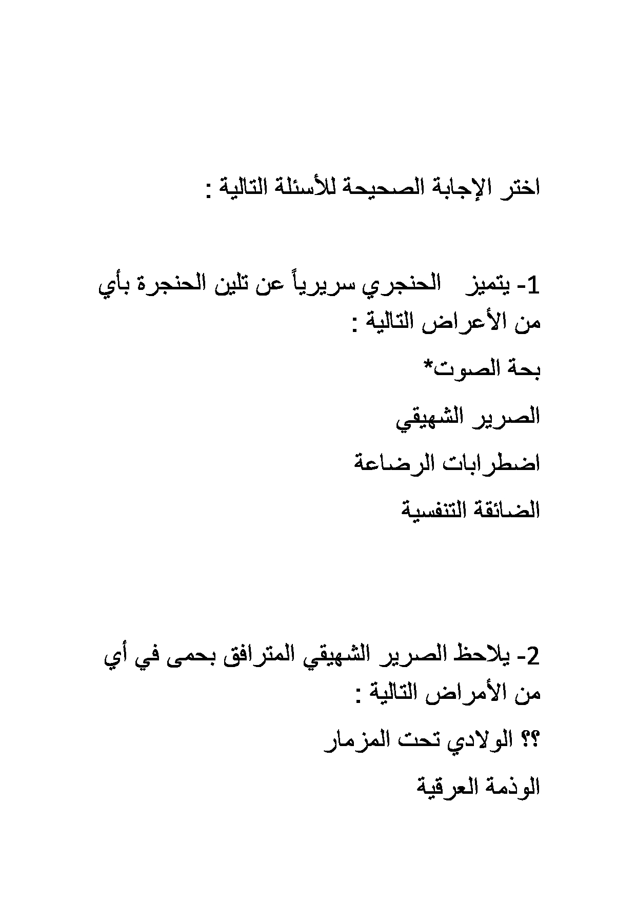اختبار في مادة الأذنية للسنة الرابعة الفصل الثاني جامعة دمشق لعام ٢٠٢٠_٢٠٢١