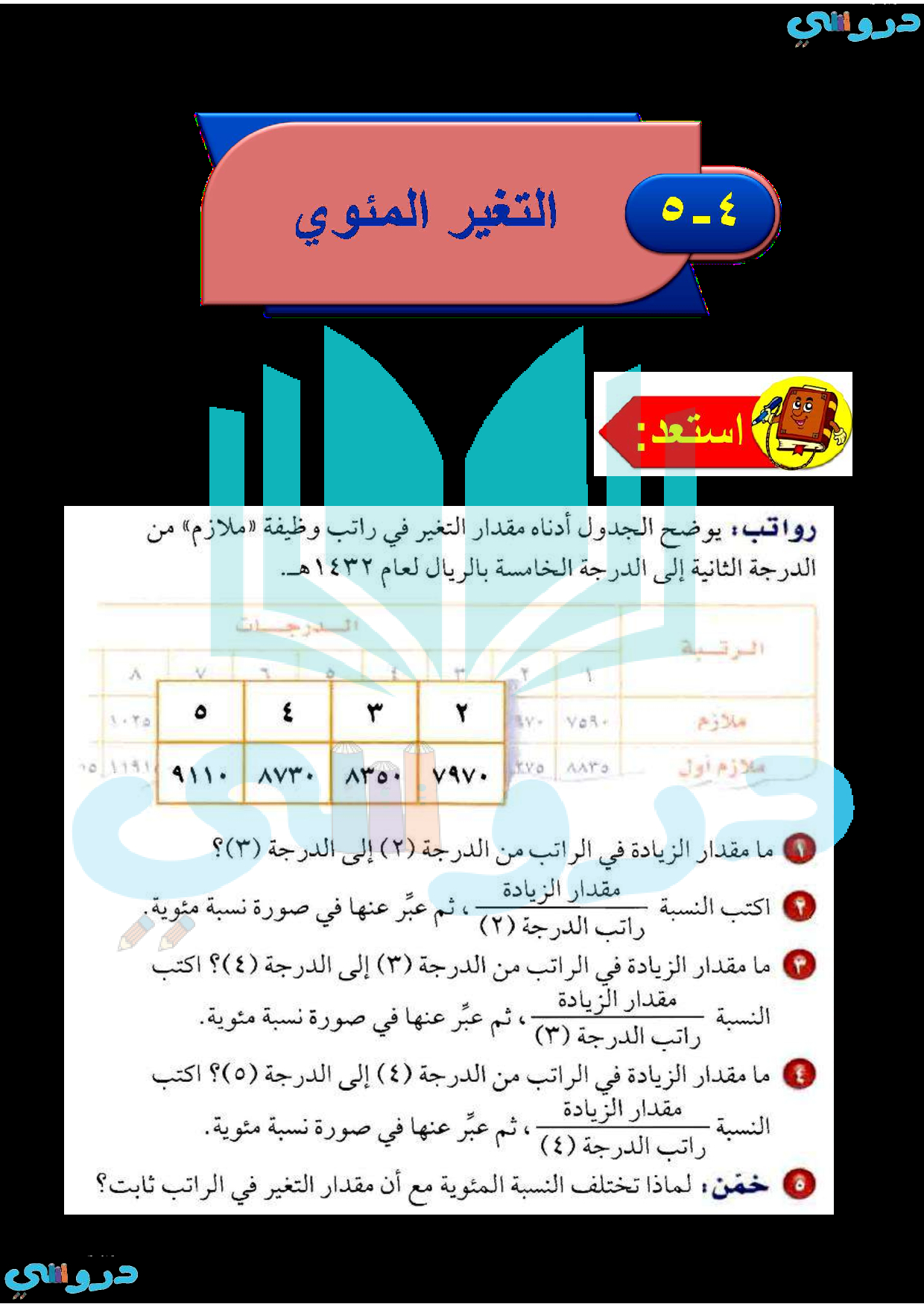 حل كتاب الطالب رياضيات ثاني متوسط الفصل الرابع الدرس الخامس