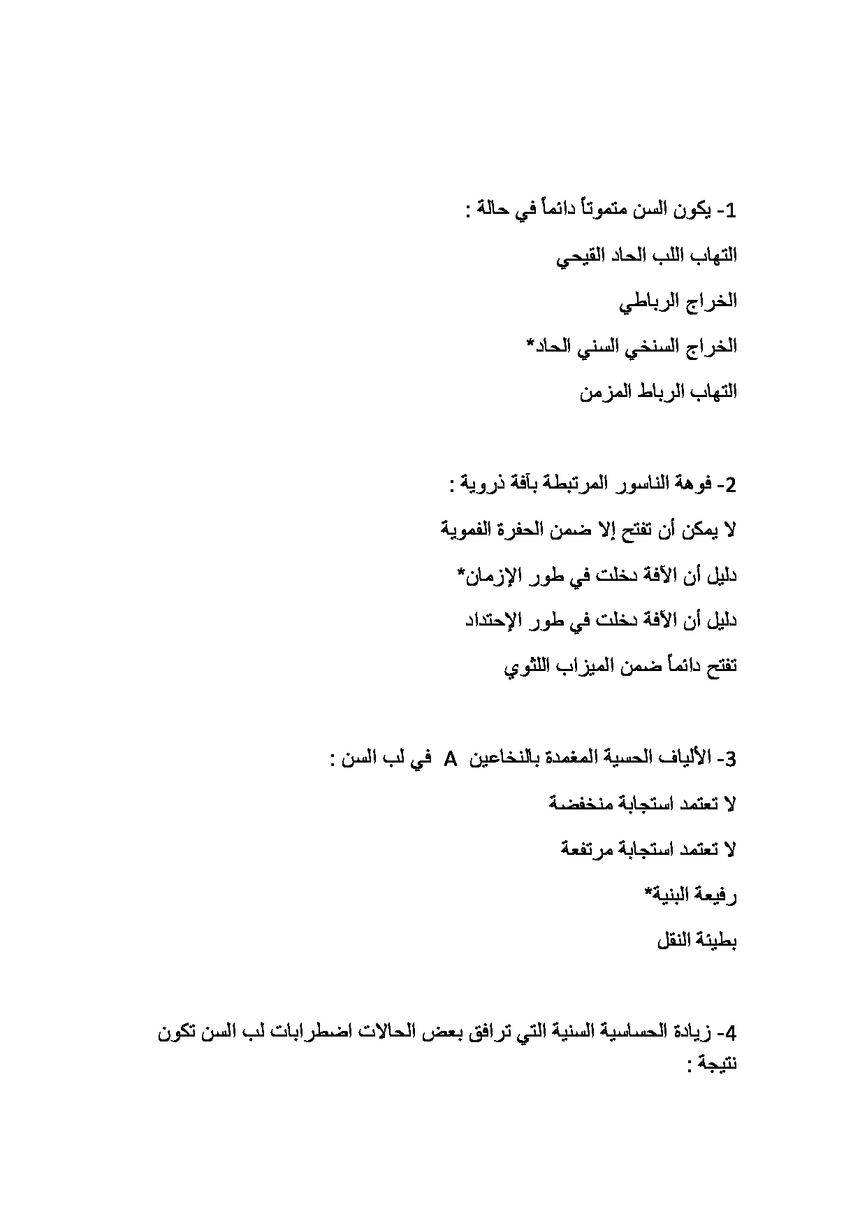اسئلة اختبار مادة المداواة اللبية 2 سنة رابعة فصل ثاني عام2016-2017حماه