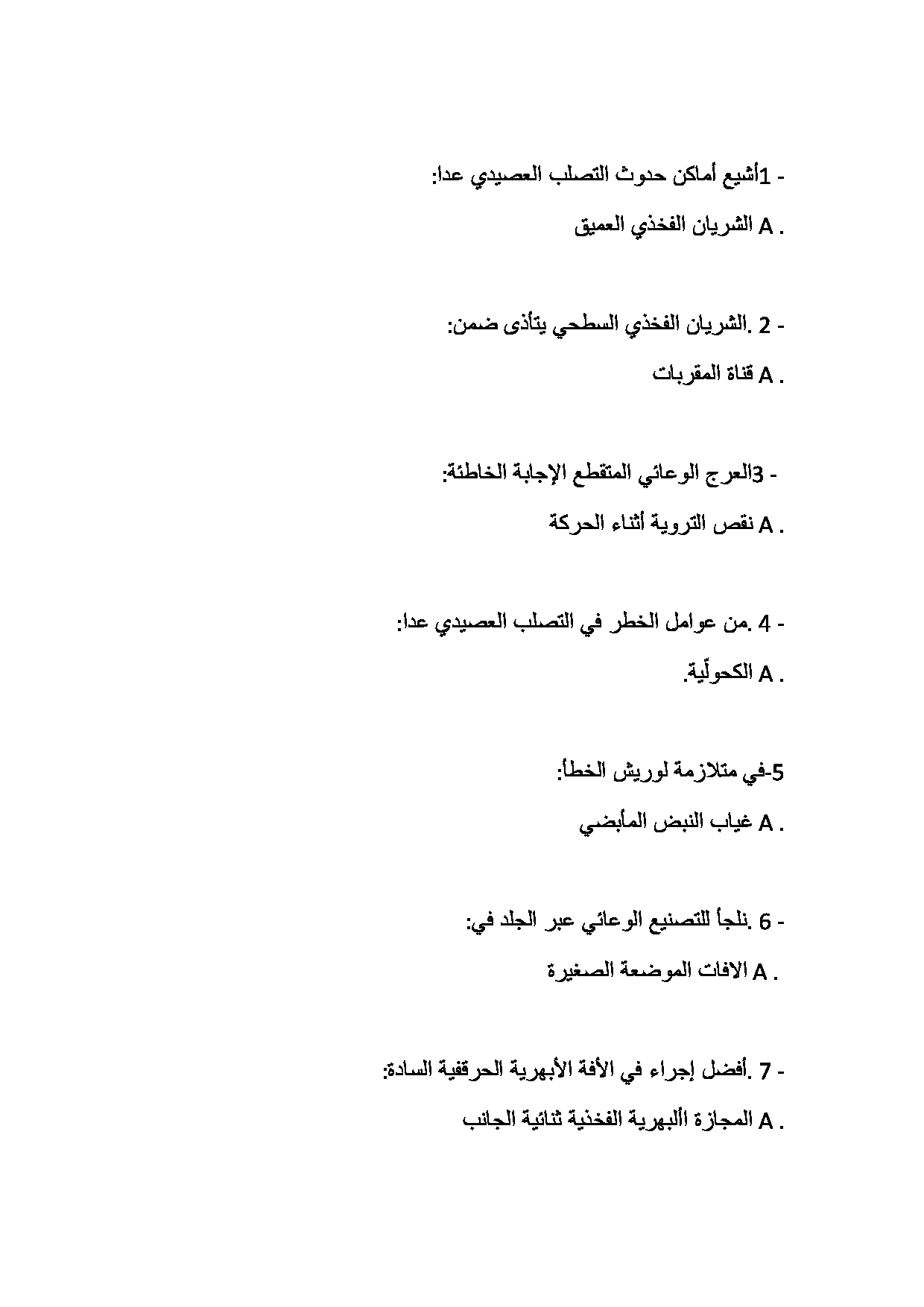 اسئلة اختبار في مادة الجراحة الوعائية والصدرية سنة رابعة فصل ثاني عام 2010 جامعة البعث كلية الطب البشري