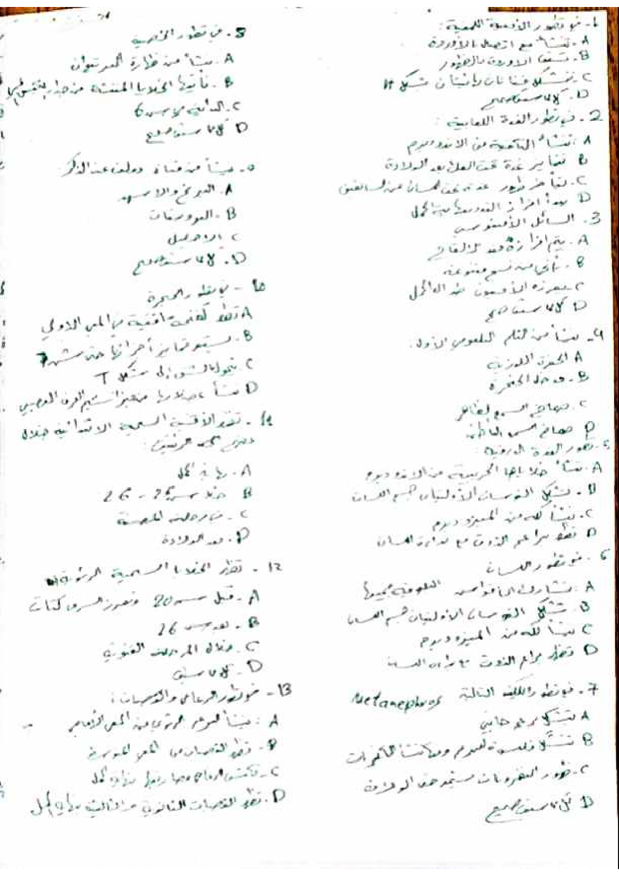 اسئلة اختبار مادة جنين طبي سنة ثانية جامعة البعث