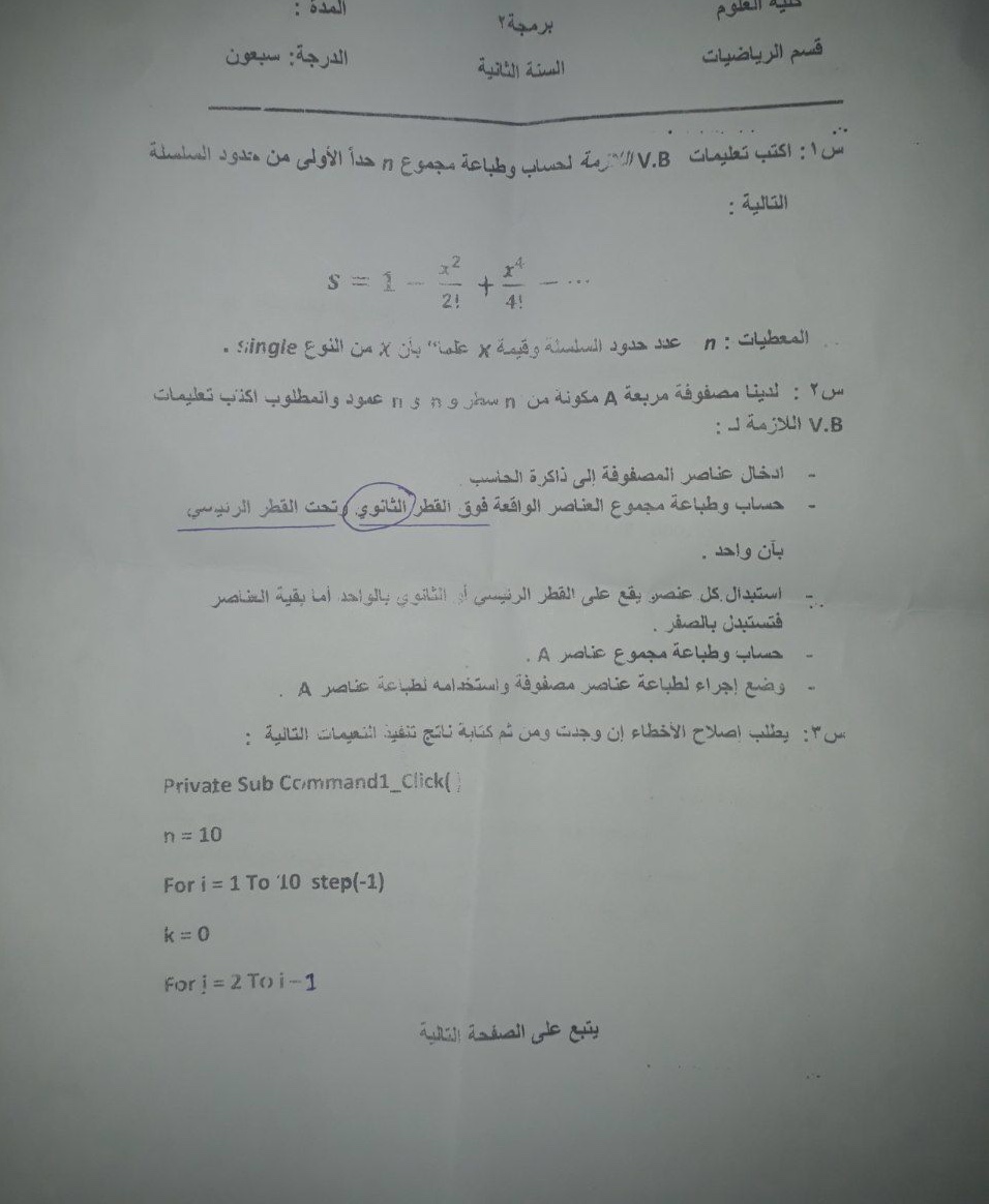 اسئلة اختبار برمجة2 للسنة2 فصل اول عام 2021-2022 ادلب رياضيات
