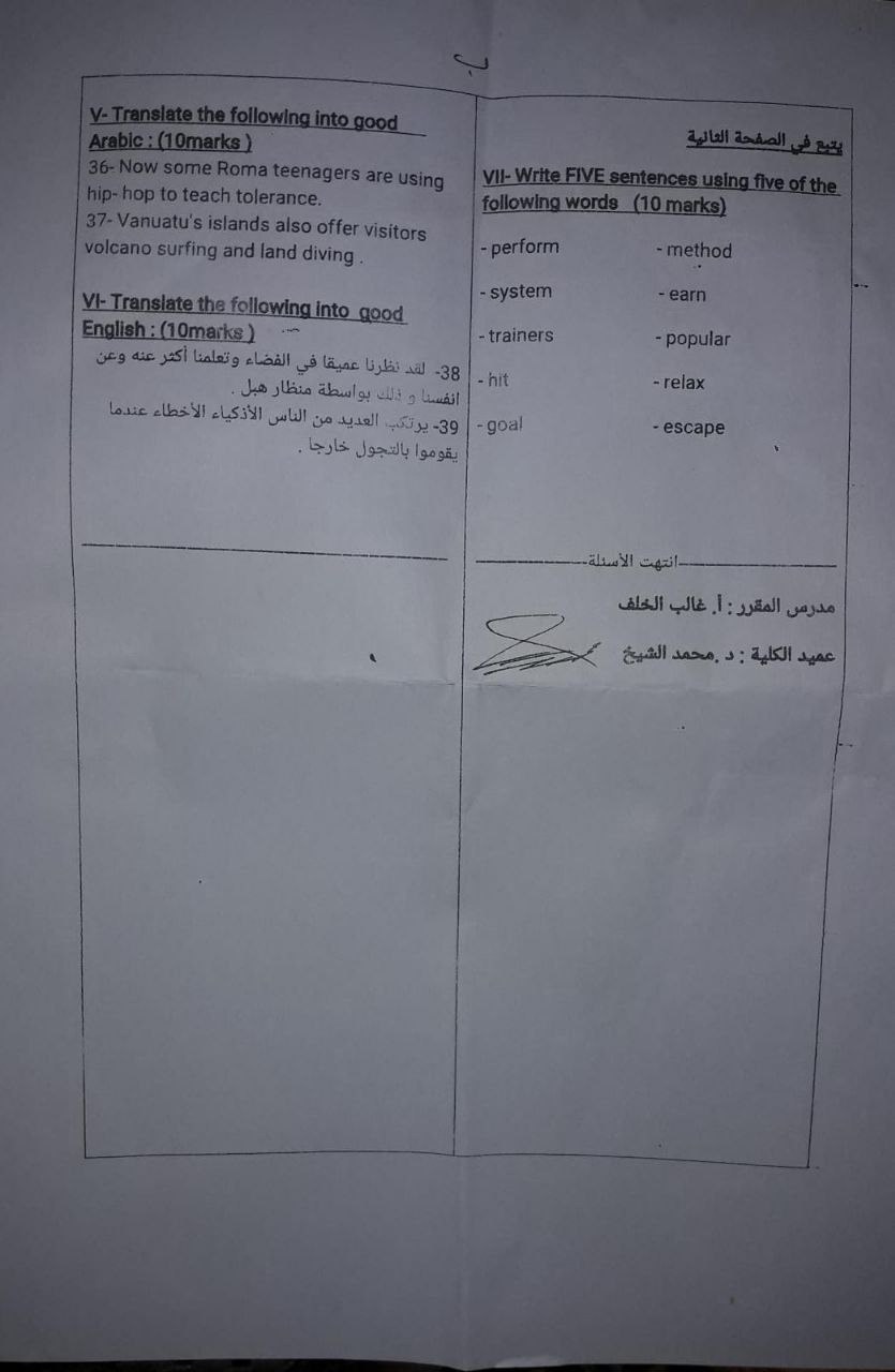 اسئلة اختبار لغة انجليزية1 للسنة1 فصل اول عام 2021-2022 ادلب كلية العلوم جميع الاقسام