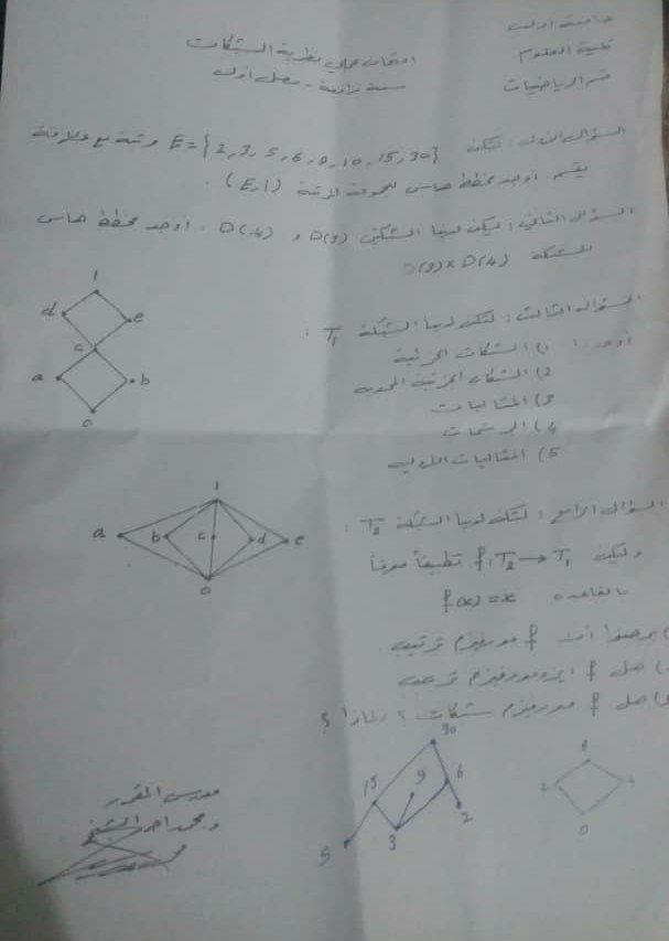 اسئلة اختبار في مادة نظرية الشبكات للسنة4 فصل1 جامعة ادلب كلية العلوم قسم رياضيات