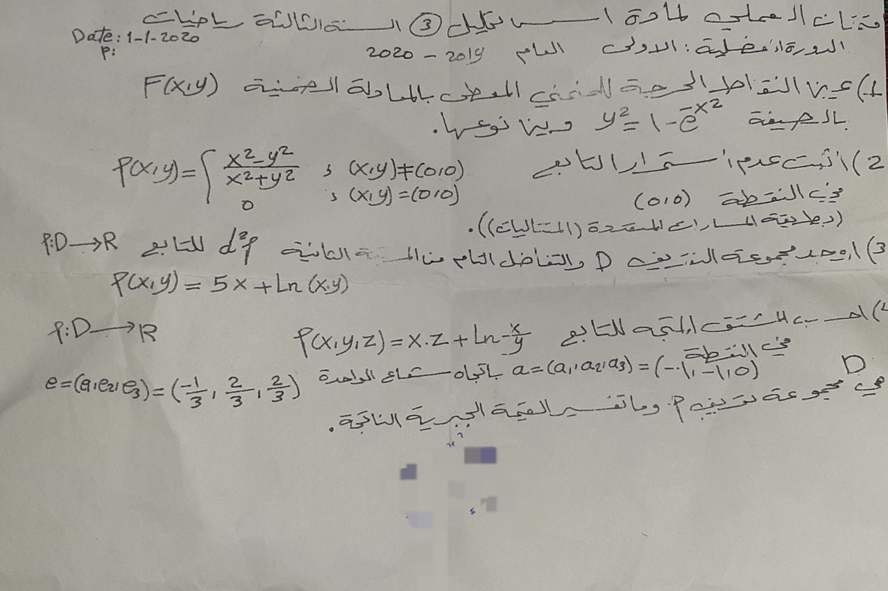 اسئلة اختبار عملي في اسس التحليل3 للسنة3 فصل1 عام2019-2020 ادلب رياضيات
