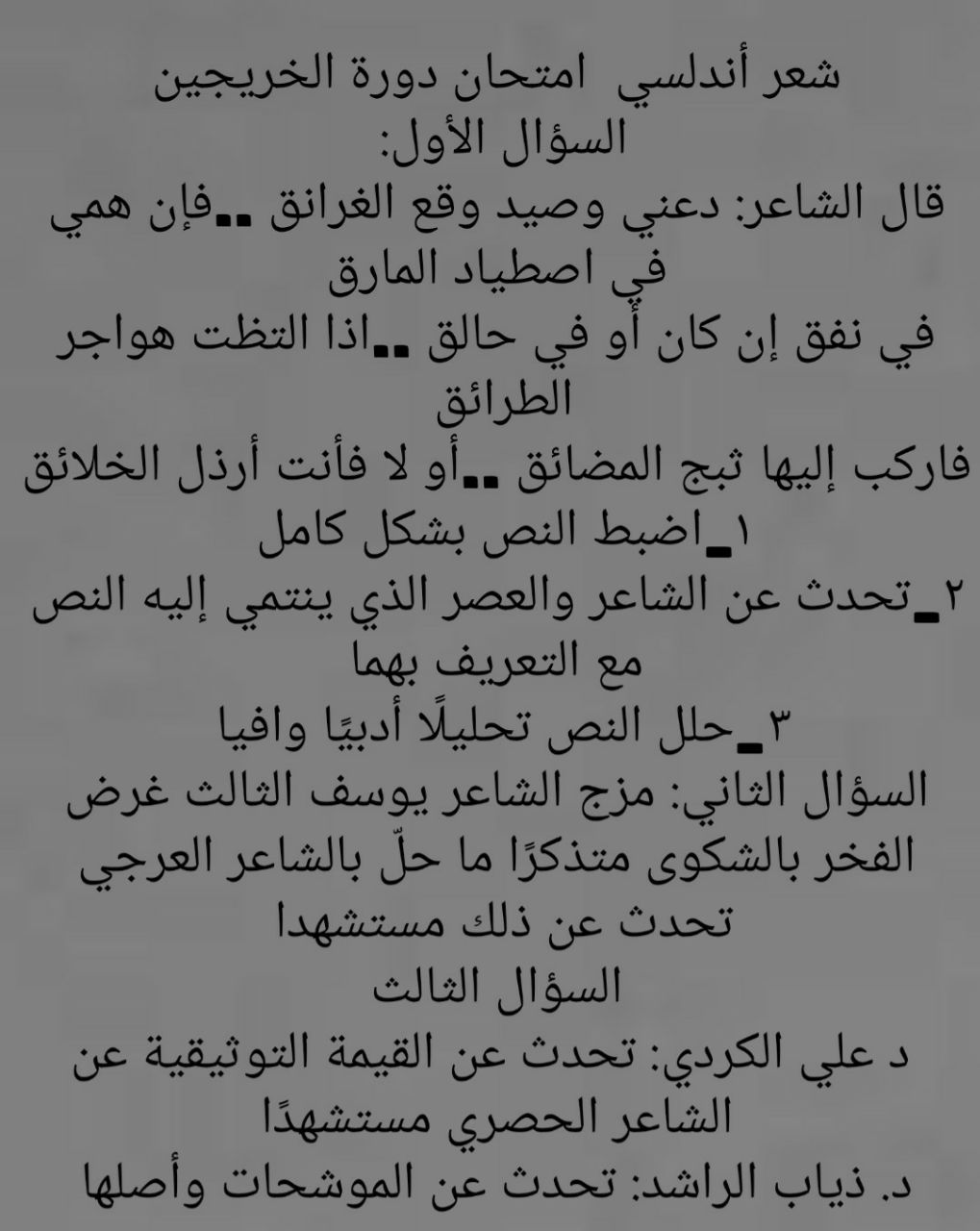 اسئلة اختبار في مادة الشعر الاندلسي للسنة3 فصل3(دورة خريجين) عام 2020 جامعة دمشق كلية الاداب قسم لغة عربية