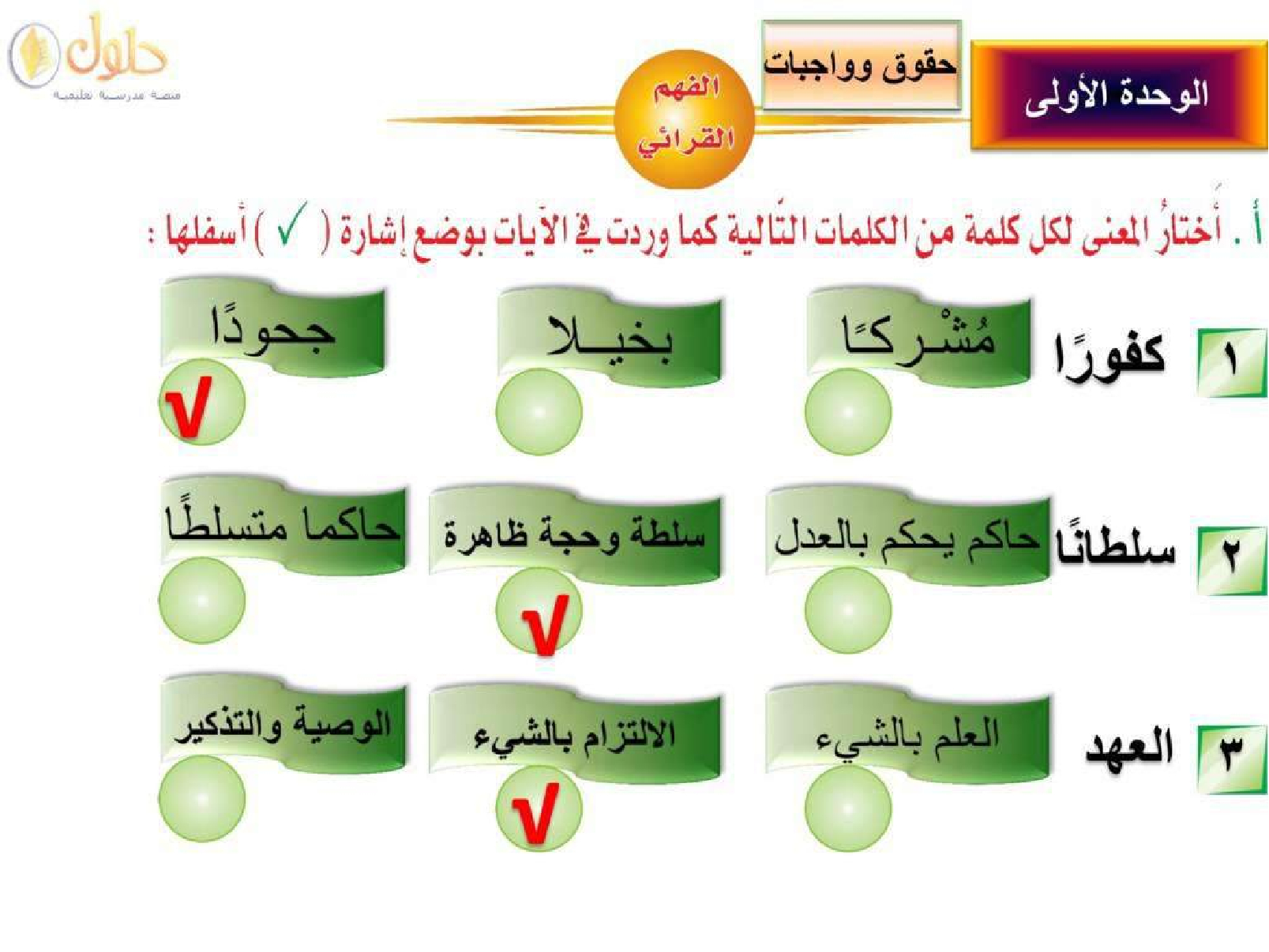 حل كتاب النشاط لغتي ثالث متوسط الفصل الاول