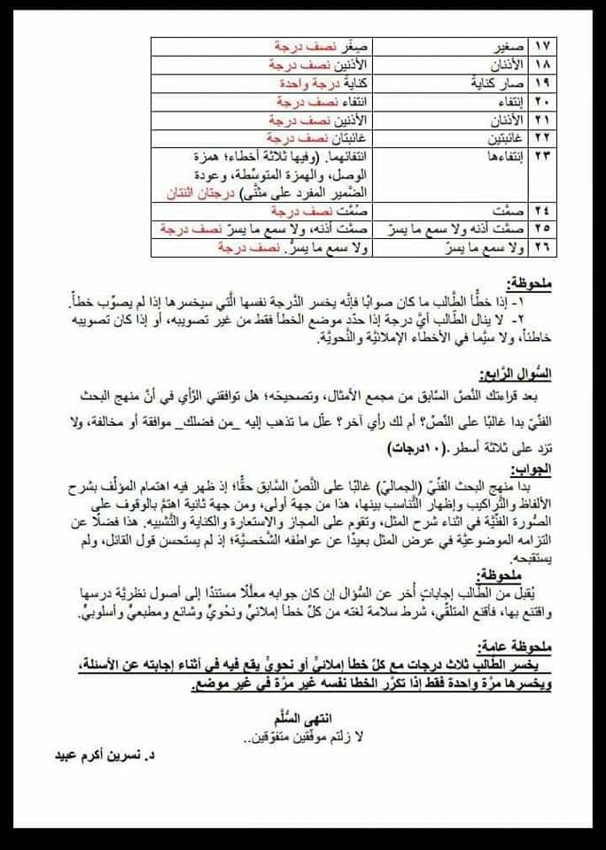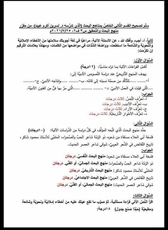 سلم تصحيح اسئلة اختبار في مادة منهج البحث والتحقيق للسنة3 فصل2 عام2021 جامعة دمشق كلية الاداب قسم لغة عربية