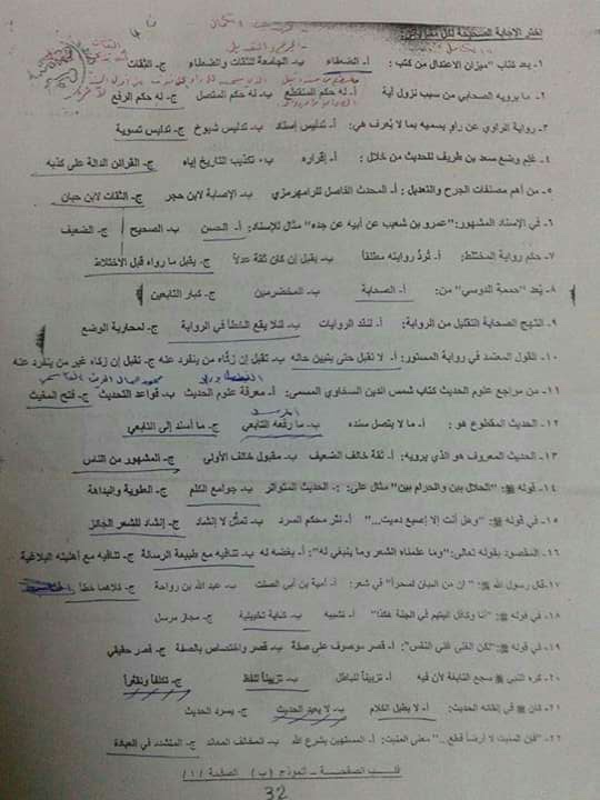 اسئلة اختبار في مادة علوم الحديث للسنة3 جامعة دمشق كلية الاداب قسم لغة عربية