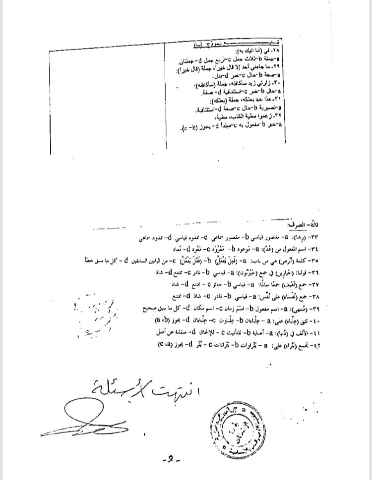 اسئلة اختبار في مادة النحو والصرف1 للسنة2 فصل1 عام2014-2015 جامعة دمشق كلية الاداب قسم لغة عربية