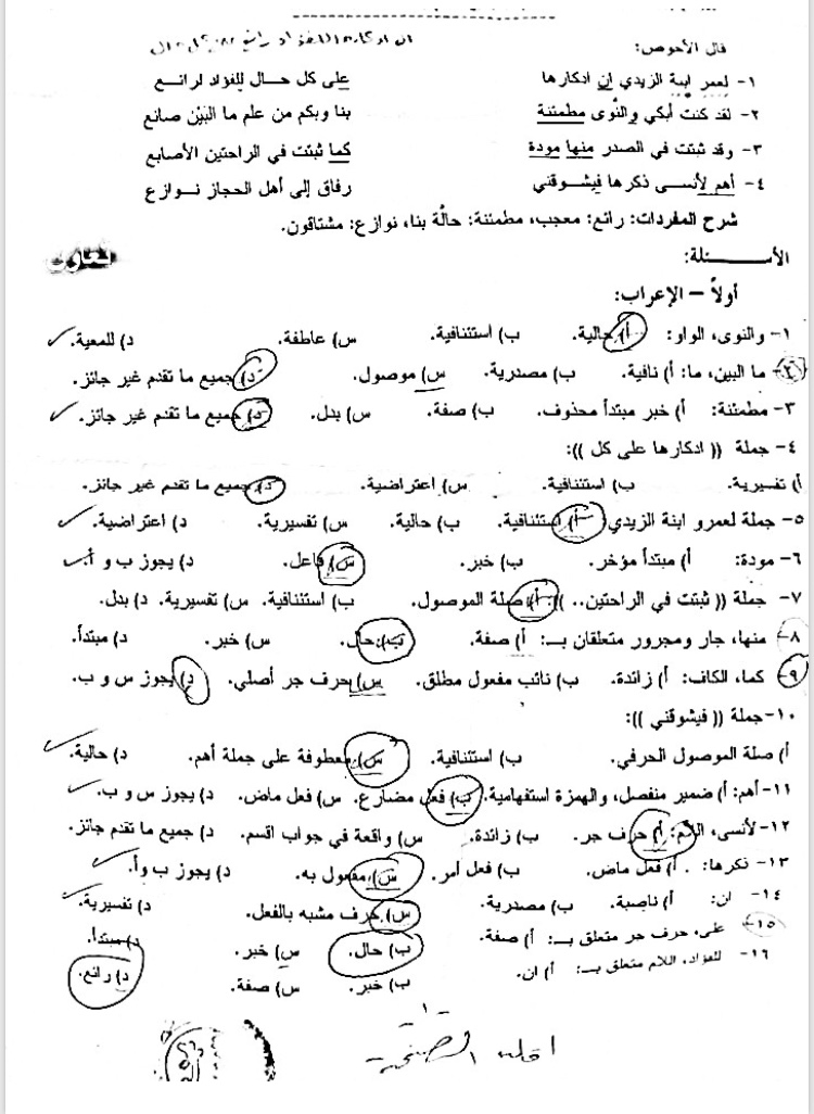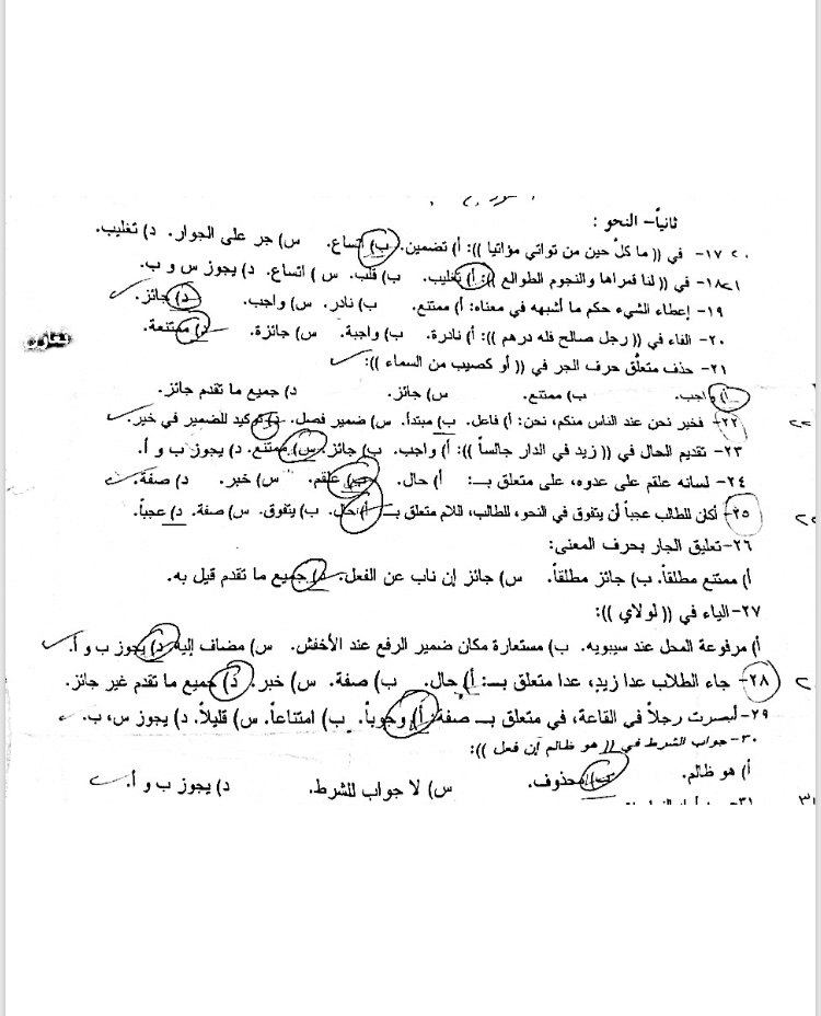 اسئلة اختبار في مادة النحو والصرف2 للسنة2 جامعة دمشق كلية الاداب قسم لغة عربية