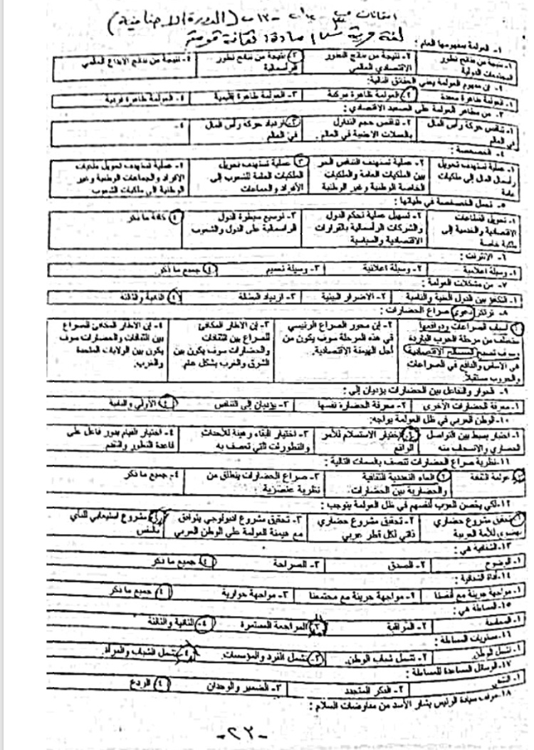 اسئلة اختبار في مادة الثقافة للسنة1 فصل3 عام2013 جامعة دمشق كلية الاداب قسم لغة عربية
