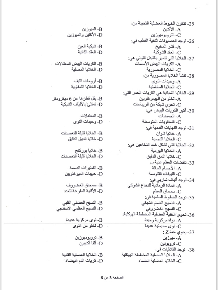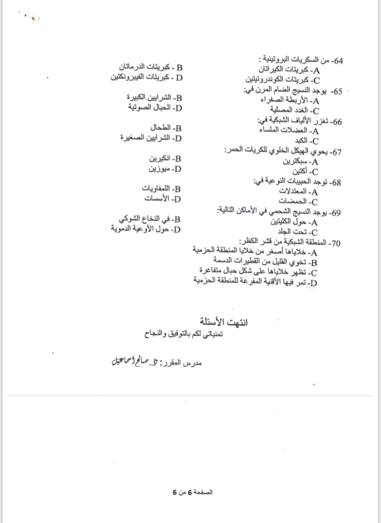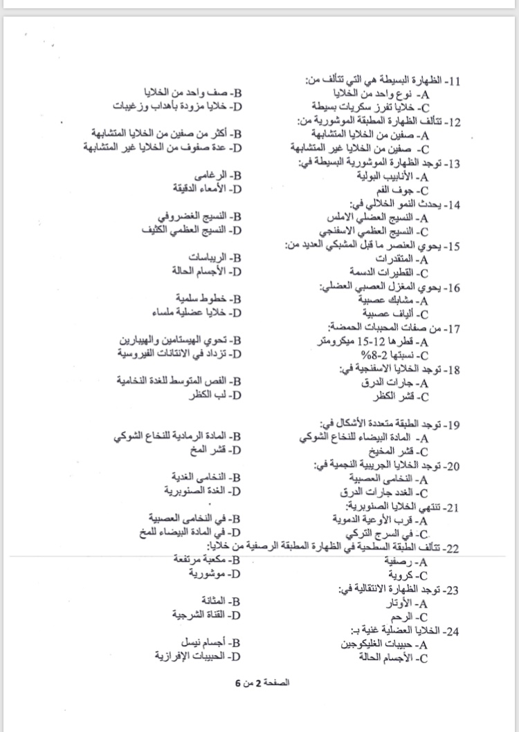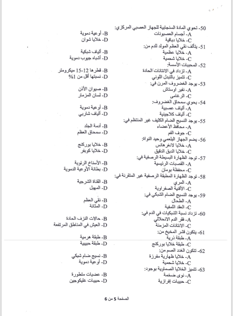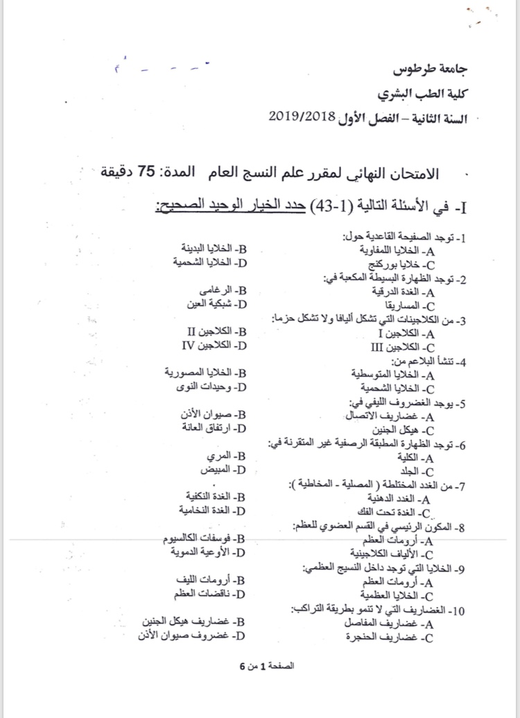 اسئلة اختبار في مادة النسج العام للسنة2 فصل1 عام2019 جامعة طرطوس كلية الطب البشري