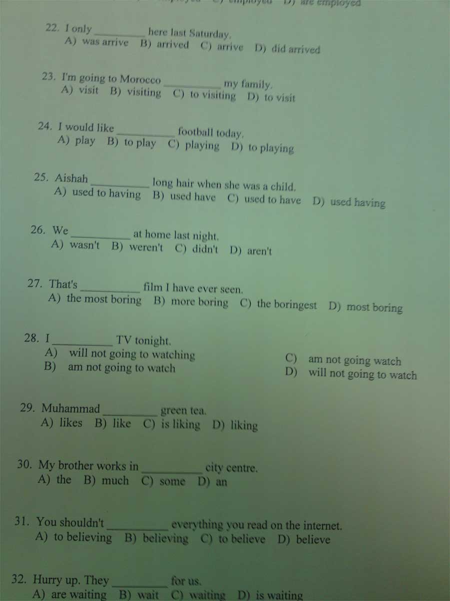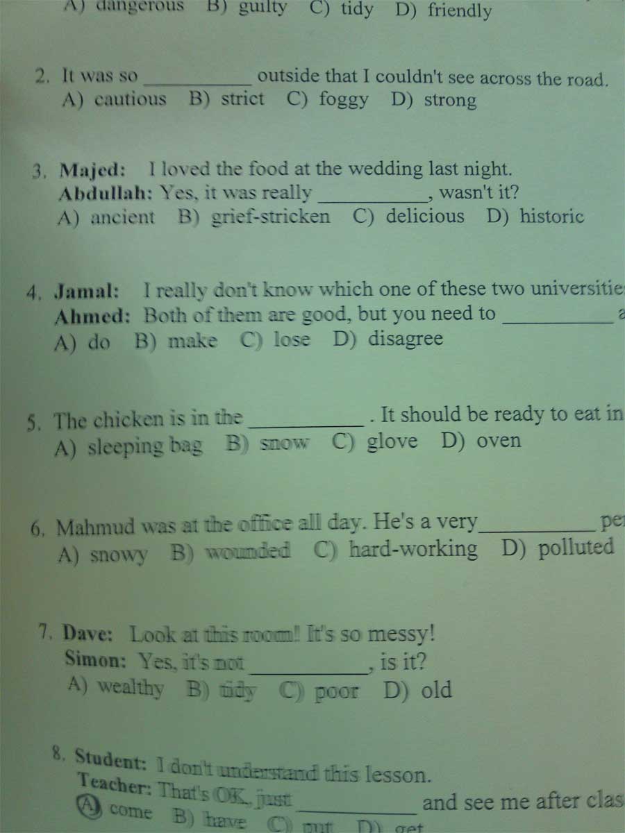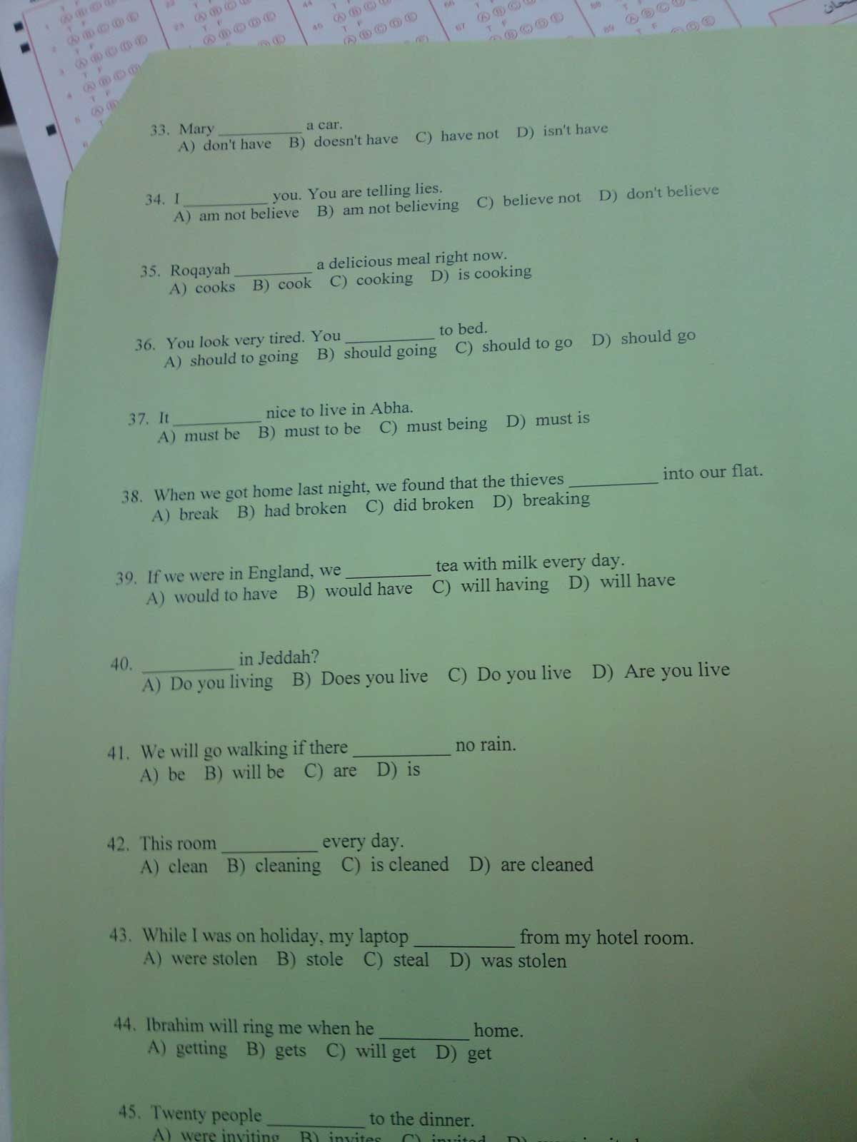 أسئلة اختبار مادة لغة إنجليزية elca 102 الفصل الدراسي الأول 1433- نموذج C جامعة الملك عبد العزيز