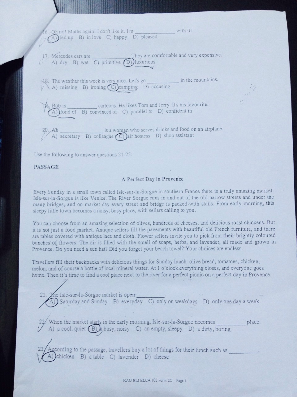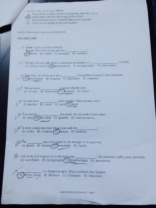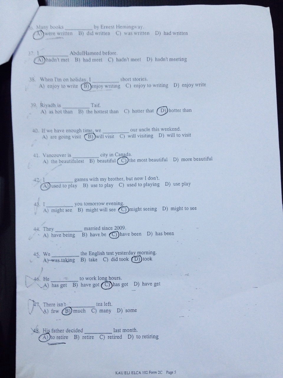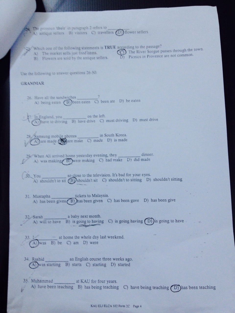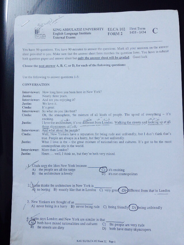 أسئلة اختبار مادة لغة إنجليزية elca 102 الفصل الدراسي الأول 1434- نموذج C جامعة الملك عبد العزيز