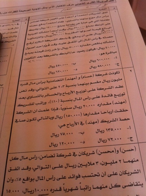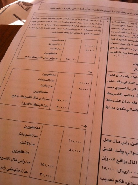 أسئلة اختبار مادة acct 102 مبادئ محاسبة الفصل الأول 1433هـ نموذج د جامعة الملك عبد العزيز