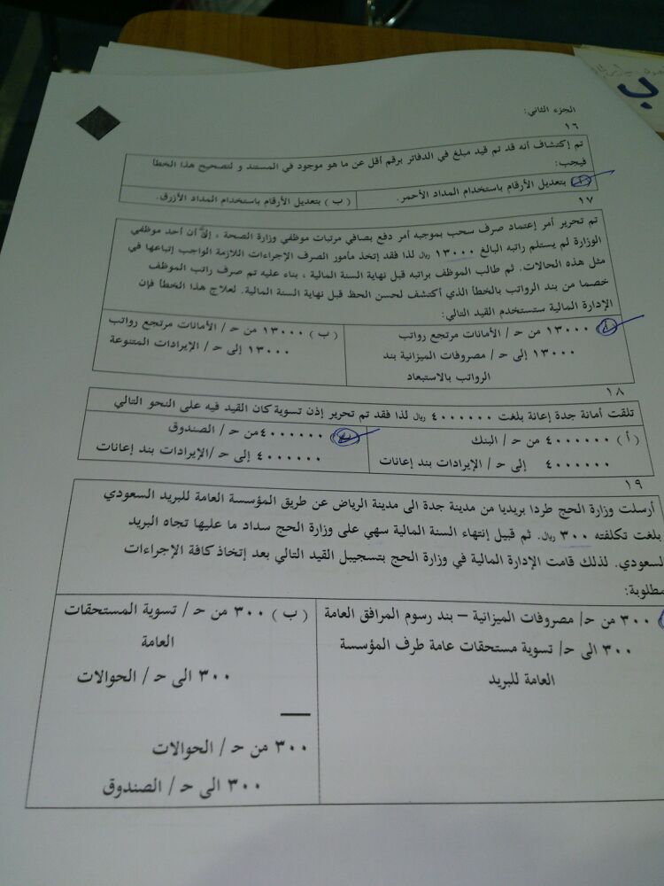 أسئلة اختبار مادة محاسبة حكومية acct 231 الفصل الدراسي الأول 1434هـ نموذج (ب) جامعة الملك عبد العزيز